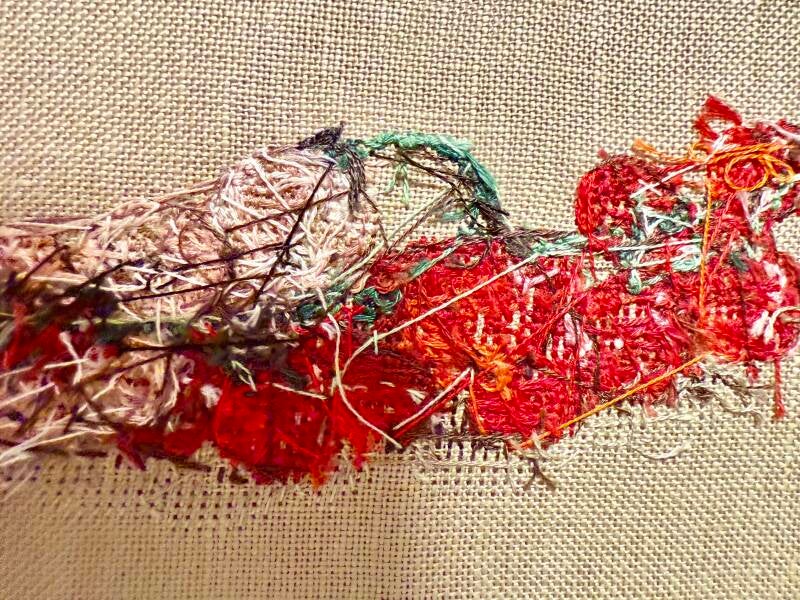 - Es ist besser, keinen Faden unter nicht vernähten Fragmenten zuzulassen, da diese beim Einrahmen durch den Stoff hindurch sichtbar sein können.