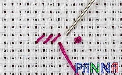 Beim Kreuzstich ist es wichtig zu lernen, wie man den Faden am Anfang und Ende der Arbeit richtig befestigt. Es wird nicht empfohlen, den Faden mit einem Knoten zu befestigen, da diese Methode nicht besonders zuverlässig ist und zu mehreren Unannehmlichkeiten führen kann: Der Faden kann sich während der Arbeit am Knoten verfangen; die Knoten können sich beim Waschen der Stickerei auflösen; und beim Einrahmen der Arbeit kann der Knoten Klumpen verursachen und den Stoff verformen. Firma PANNA stellte zur Verfügung verschiedene Befestigungsmethoden vor, damit Sie die für Sie bequemste auswählen können. Ab hier werden die Bilder von PANNA verwendet. Für diejenige, die russische Sprache beherrschen, ist hier unmittelbar der Link zur PANNA.