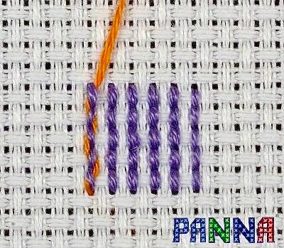 Diese Methode wird beim Sticken mit einer geraden Anzahl Fäden (2, 4 usw.) der gleichen Farbe verwendet.