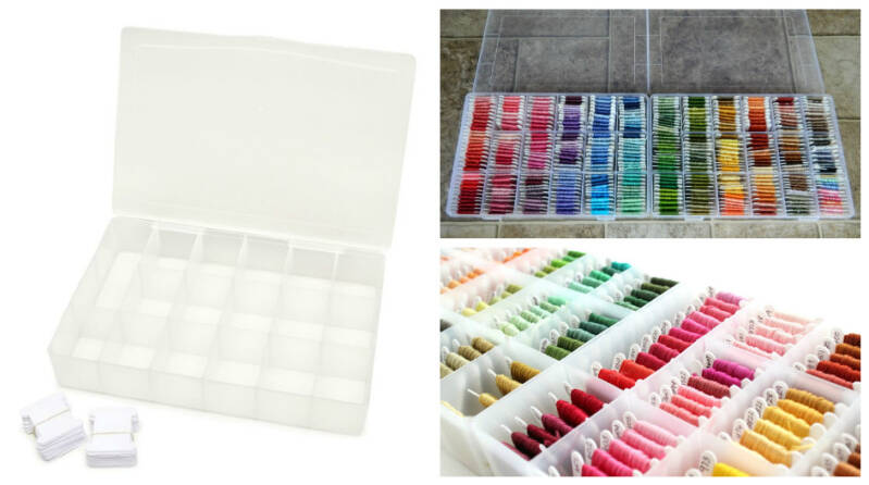 Dies ist wahrscheinlich die gängigste Methode, da Bastelläden eine große Auswahl an Kunststoffbehältern mit Trennwänden anbieten, die die Aufbewahrung selbst großer Mengen Stickgarn einfach und bequem machen.