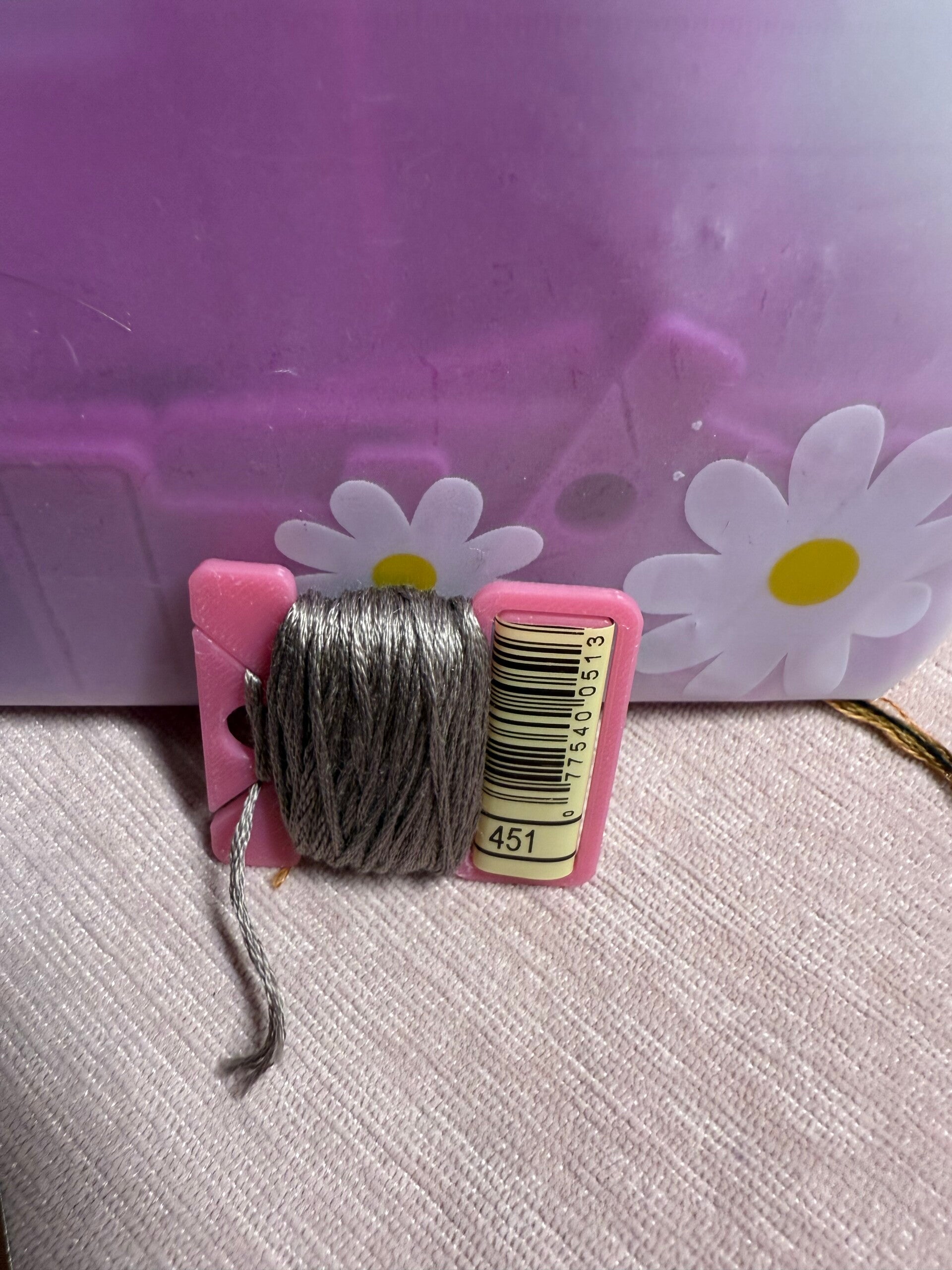 🪡 Gehen Sie mit Fäden sehr vorsichtig um. Wenn Sie eine Spule fallen lassen und der Faden auf den Boden fällt, entsteht eine Delle, die Mikroschäden am Faden verursacht und das Risiko eines Fadenbruchs im entscheidenden Moment erheblich erhöht.